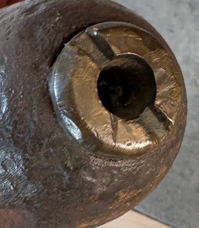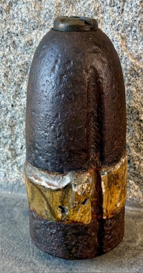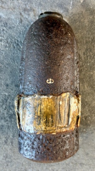 Fired 3in Hotchkiss case shot shell. Marked by Tom Dickey #24 which according to his key means the recovery location was the "Savannah Georgia siege lines."