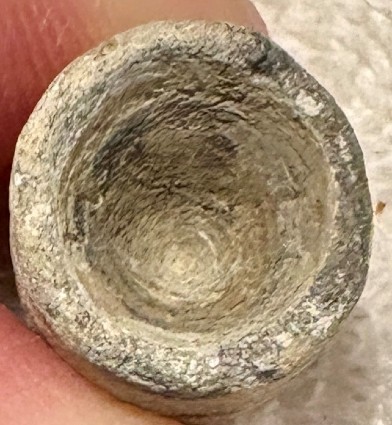 The late Terry Waxham recovered 10,000 MTEs at the Marshall Texas Powder Works site. Only a few of them had a very deep cavity like this one.