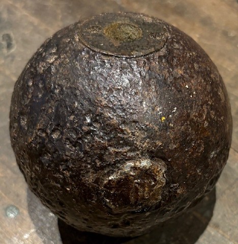 Very desireable 6pdr sideloader spherical shell recovered a long time ago at Fort Harrison. Fort Harrison is now protected property, but in the old days, this was one of the very few spots were these rare shells could be dug.