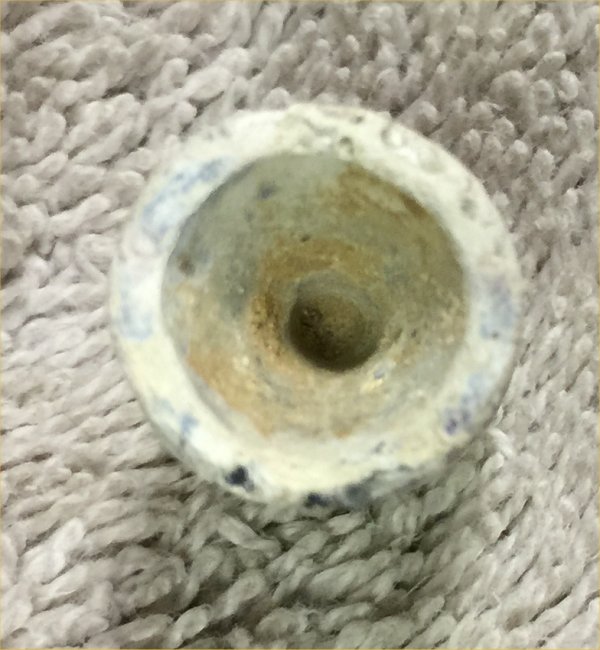 The cleaner style is well known from the Elijah D. Williams patent bullets. But he also designed a more typical 3-ringer type. This style has square grooves like the Type-III cleaner and has a cap on top. It is of very fine construction. It has a nice patina although there is a digger's kiss on one side but it is only on the surface. A very nice specimen.
