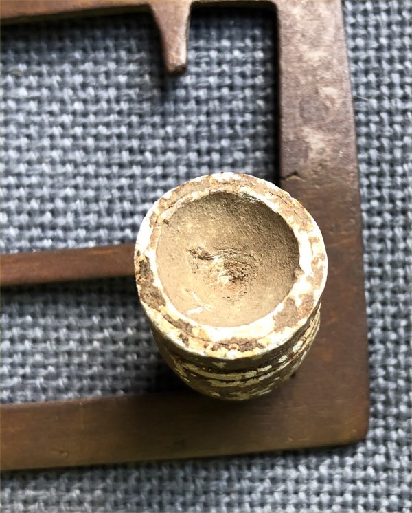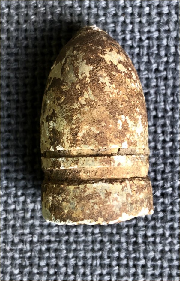 While the .58 caliber Gardner bullets are frequently seen and the .54 caliber ones are sometimes seen, the .69 caliber ones are pretty uncommon. This is a very nice example of the big boy Gardner with the shallow base. It is in good condition all the way around with no digger marks. Patina is good and likely could be given some TLC to reveal more of the white.