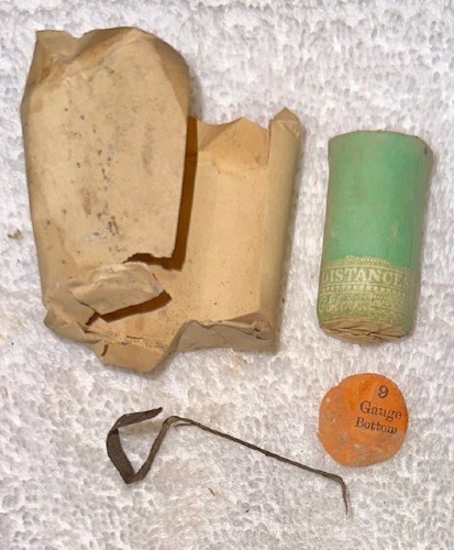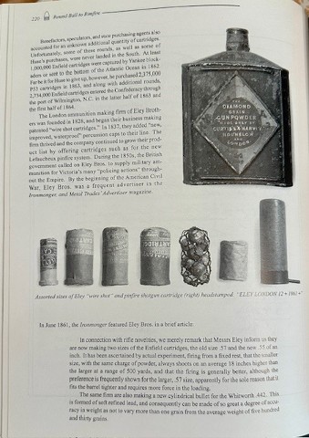 "Wire shot" cartridge made by Eley in Britain as shown on page 220 in Round ball to Rimfire IV (see last picture below). These colorful cartidges are very desirable and hidden inside a brown paper wrapper which has been carefully unfolded away in this instance. All the wrappings come with it.